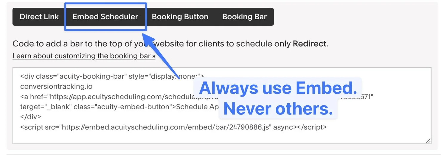 Always Embed Acuity Scheduling Inside Your Website!