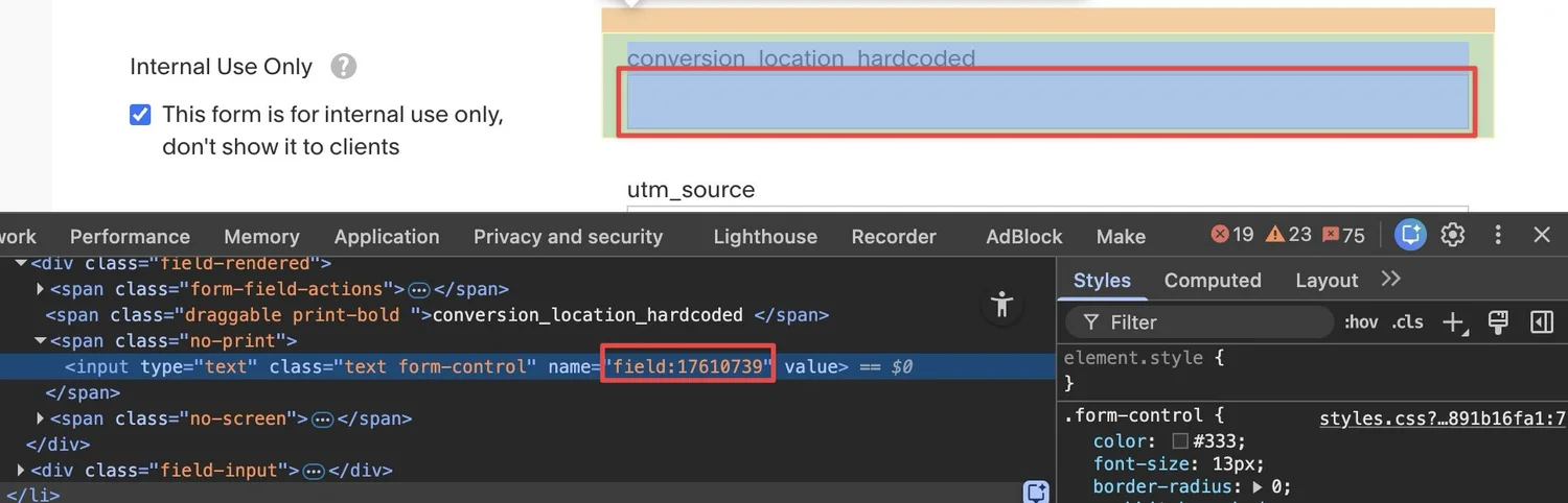 4) Right click, the box, click Inspect, and get the field ID.