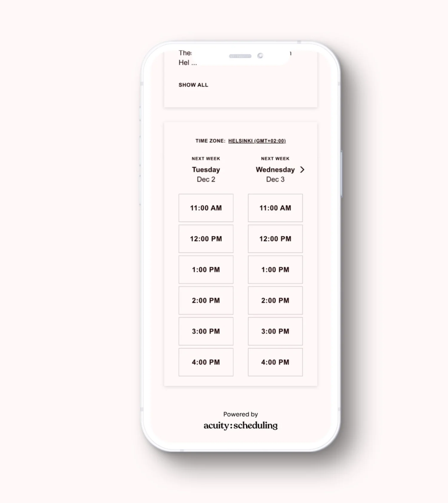 So make sure to stretch your Acuity iFrame embed from left edge all the way to the right edge, on the mobile view. In Squarespace this is easy. With WordPress or Shopify, it may be a bit trickier but I still think it’s worth it.