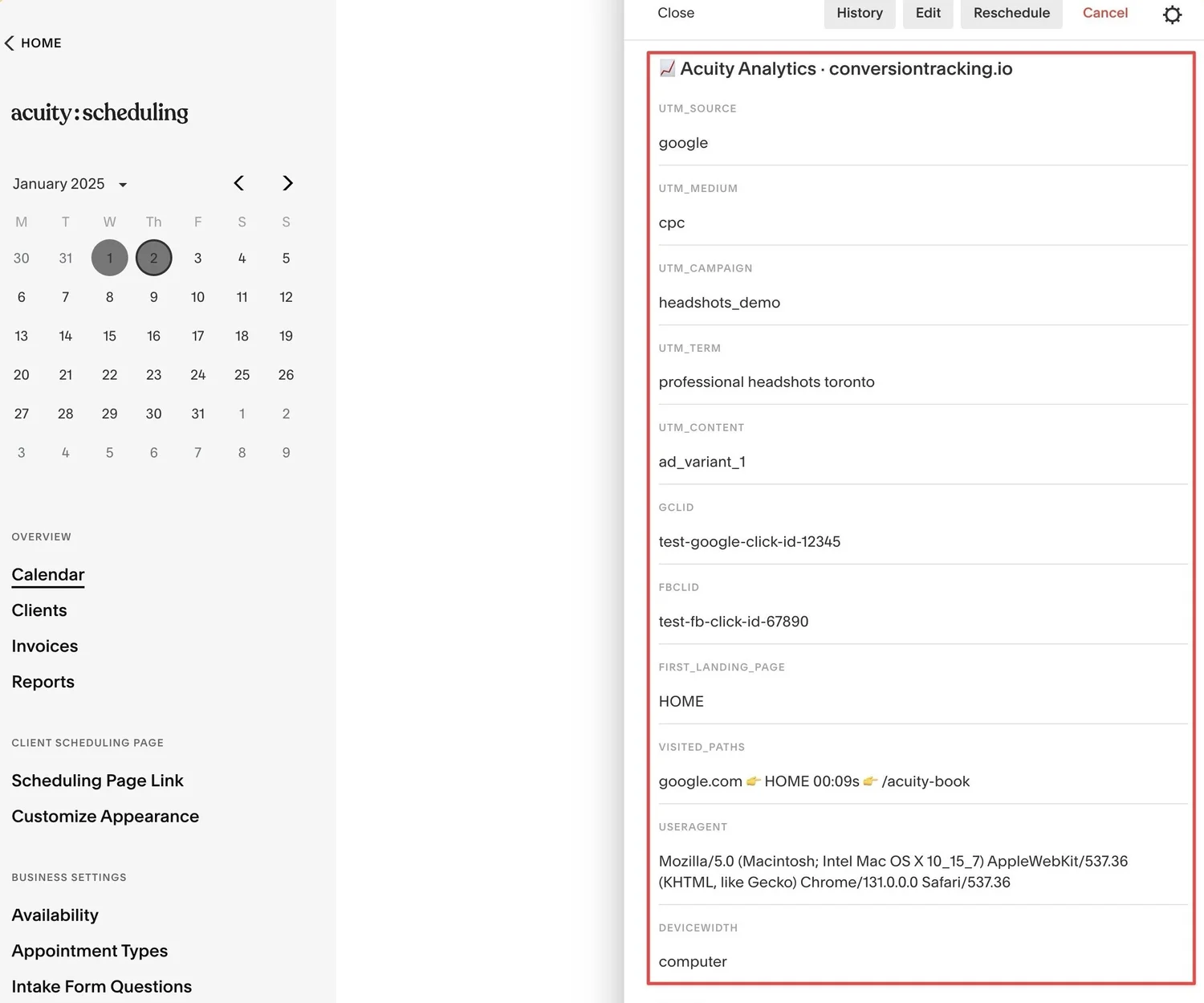 We always want to see where each booking happened. You may have the same Acuity iFrame embed on multiple pages, like a landing page, contact page, services page etc.