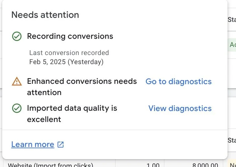 Like the old gclid conversions complaining about missing enhanced conversion data: