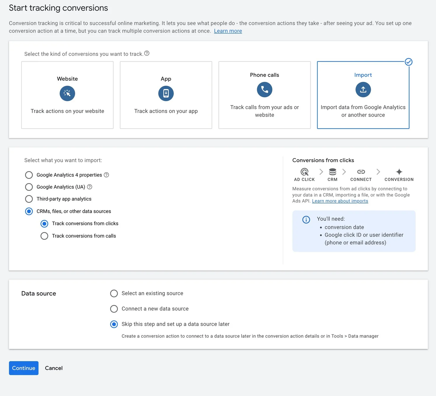 This is something I'm now testing. I'm curious if we can keep using the same conversion goal, but then just switch the method from uploading Google click IDs into uploading the first-party data like an email.